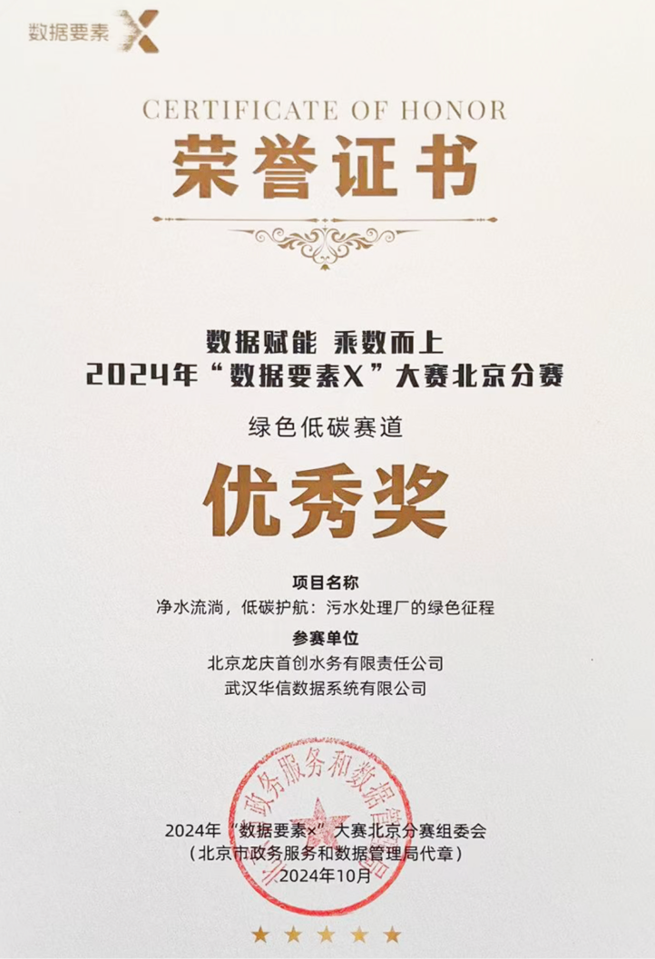 大赛北京分赛区是全国20个赛区中最重要的赛区,奖项评审由6位院士领衔的专家团队完成。武汉bifa必发(中国)数据系统有限公司与北京龙庆首创水务有限责任公司合作的项目,凭借其在污水处理领域的创新性应用以及对数据要素的有效利用,赢得了评委的高度认可。